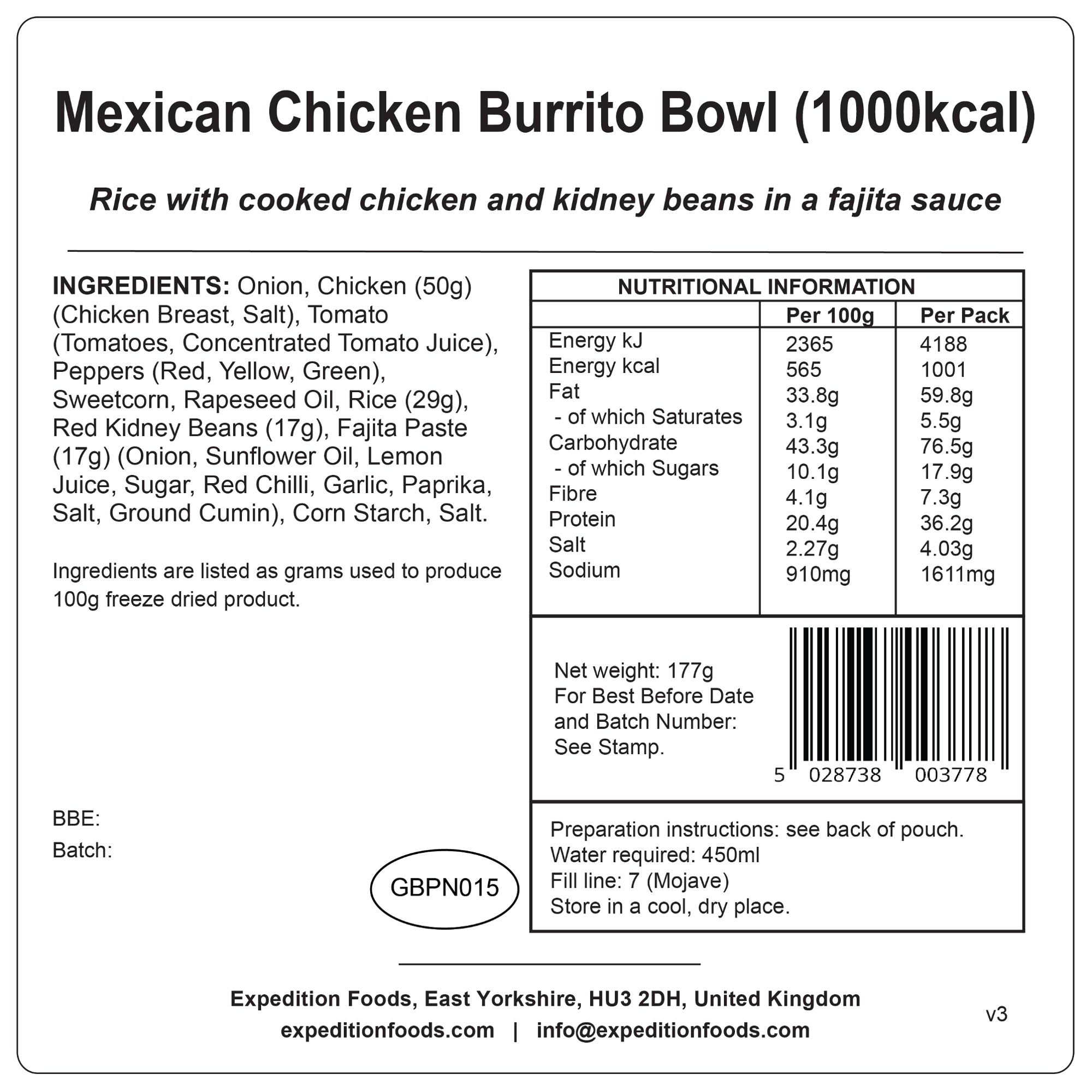 This freeze-dried delight brings a fiesta of flavour, wherever you are. We've combined tender chicken with long grain rice, vibrant sweetcorn, colourful bell peppers, and hearty red kidney beans. The base of onions and tomatoes creates a rich and savoury foundation, all brought together with our zingy fajita paste – a carefully balanced blend of red chillies, garlic, paprika, cumin and a touch of lemon. This wholesome and convenient meal ensures a satisfying feed whether you're conquering a mountain or simply need a quick and tasty bite. No fuss, no mess, just pure, delicious flavour.