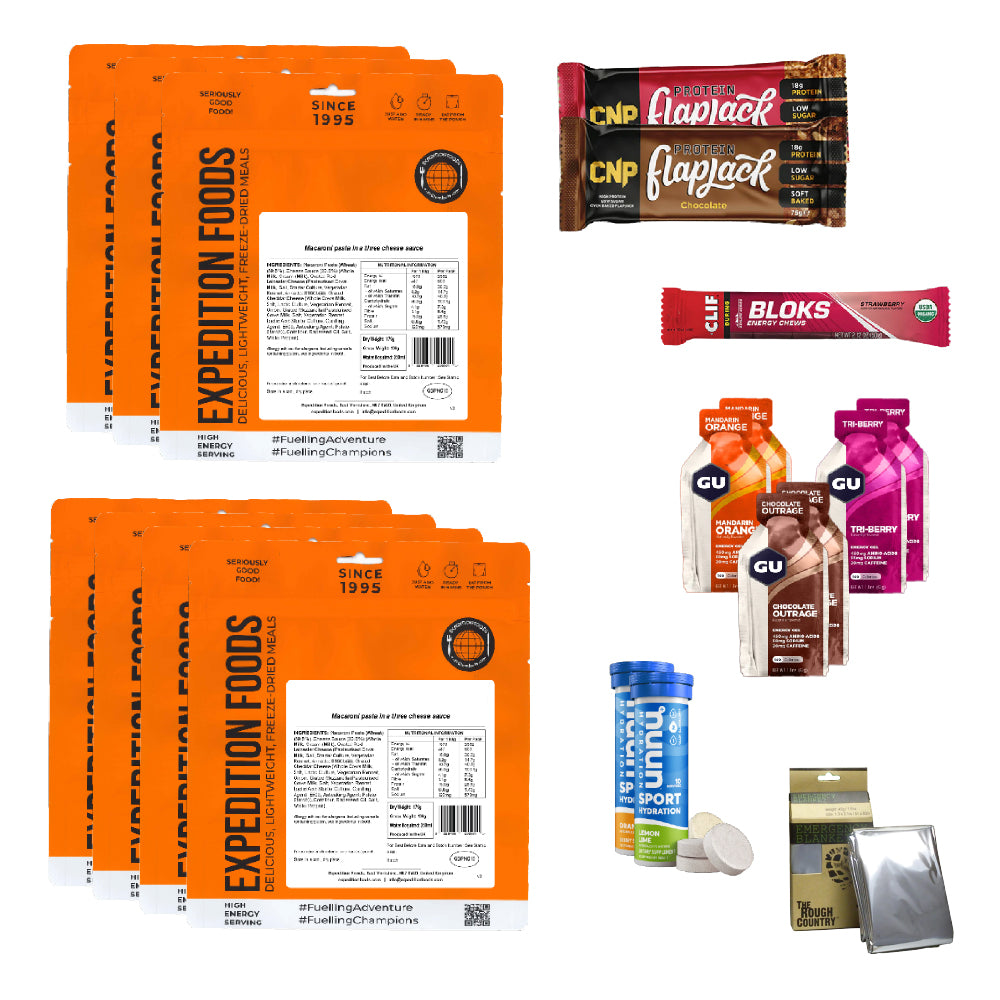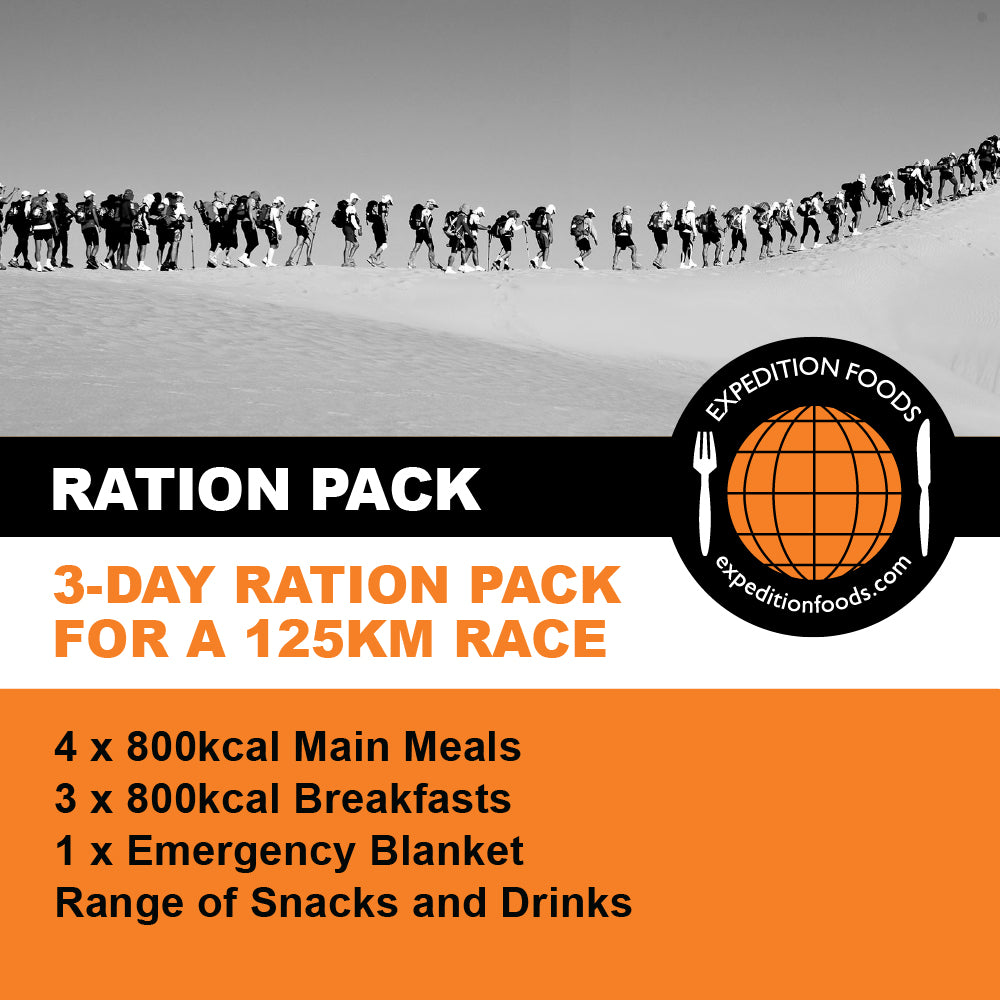 To ensure you meet your calorie requirements, Expedition Foods has put together a nutrition pack containing all your needs for your 3 day/125km race.